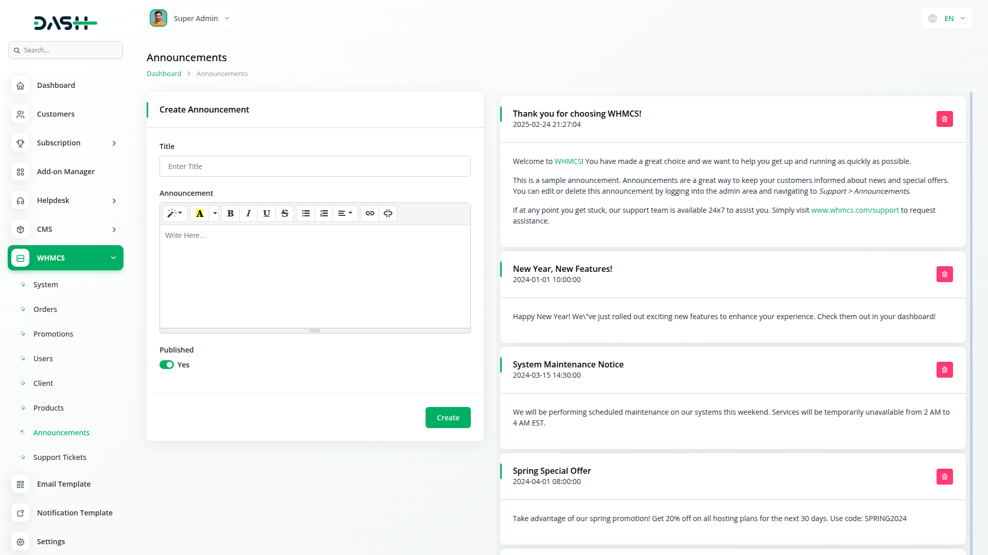 Collaborate effectively through team-based administration and multi-user management for complete operational control. Track login attempts and monitor staff activities for enhanced security. Manage announcements with summer note formatting and scheduling capabilities while maintaining professional communication standards. Access detailed activity logs, monitor email templates, and maintain comprehensive system oversight for effective team collaboration.