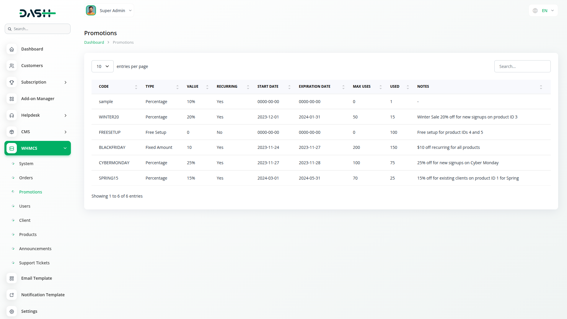 Streamline order processing with advanced management capabilities from creation to completion through third-party API integration. Create orders with client selection, payment method configuration, promotion code integration, and automated processes using API data. Support multiple product services with domain management, quantity tracking, and flexible cycle configurations. Display detailed product information retrieved directly from the WHMCS API with organized categories, and manage promotional codes with real-time tracking capabilities.